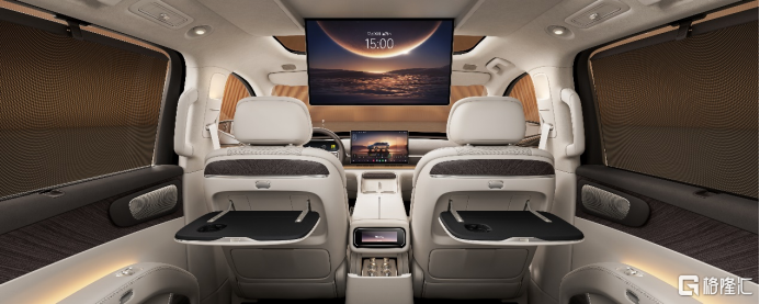 座椅采用12层奢享级结构,全车座椅支持电动调节,并实现6座加热、4座吸入式通风与10点式按摩,二排右侧零重力座椅支持120°零压躺姿、4向腿托与ABTS一体式安全带,1.9米乘员也能享受悬浮式休憩体验。第三排为同级超大贵宾座,支持131°靠背无极调节、座椅加热与一键电动翻折,搭配专属双扶手与全平地台,彻底解决传统三排"小板凳"痛点。此外,二/三排专属遮阳帘遮蔽率分别达93.2%、91%,全方位兼顾舒适与隐私。