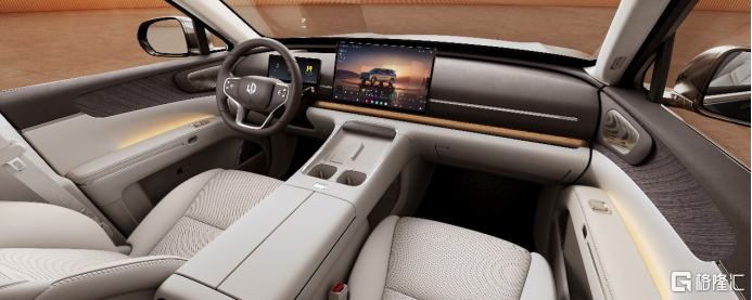 内饰以双层叠环绕座舱为核心,水平线条向两侧延伸,打造开阔的视觉空间,横向舒展一体化设计营造温润豪华氛围。材质工艺尤其考究,单片单裁、大师级高定辊边、高定V字绗缝、珍珠打孔、天鹅绒顶棚拉毛、V字拼花、后备厢簇绒七大车规级高定工艺,将百年匠心融入细节,搭配座椅导轨包覆、椅背软包、PVD镀层扬声器罩面,每一处细节都彰显旗舰豪华底蕴。此外,座舱提供云雾灰、丹雅棕、霁雨灰三款优雅配色,以低饱和度自然色调,打造无时代感的得体舒适空间。